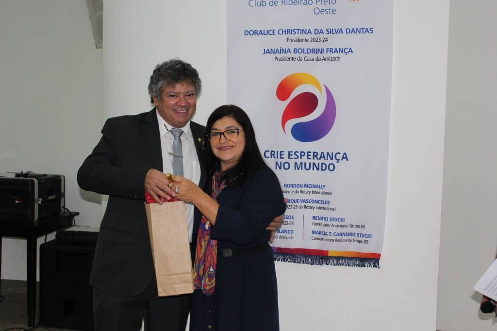 Em seguida, chegou o momento tão esperado, quando Doralice Dantas foi empossada como a nova presidente do Rotary Club de Ribeirão Preto-Oeste. Com uma trajetória marcada pelo comprometimento com o serviço voluntário e uma visão de impacto social, Dantas foi eleita pelos membros do clube para liderar os esforços da organização durante o ano rotário 2023/24.