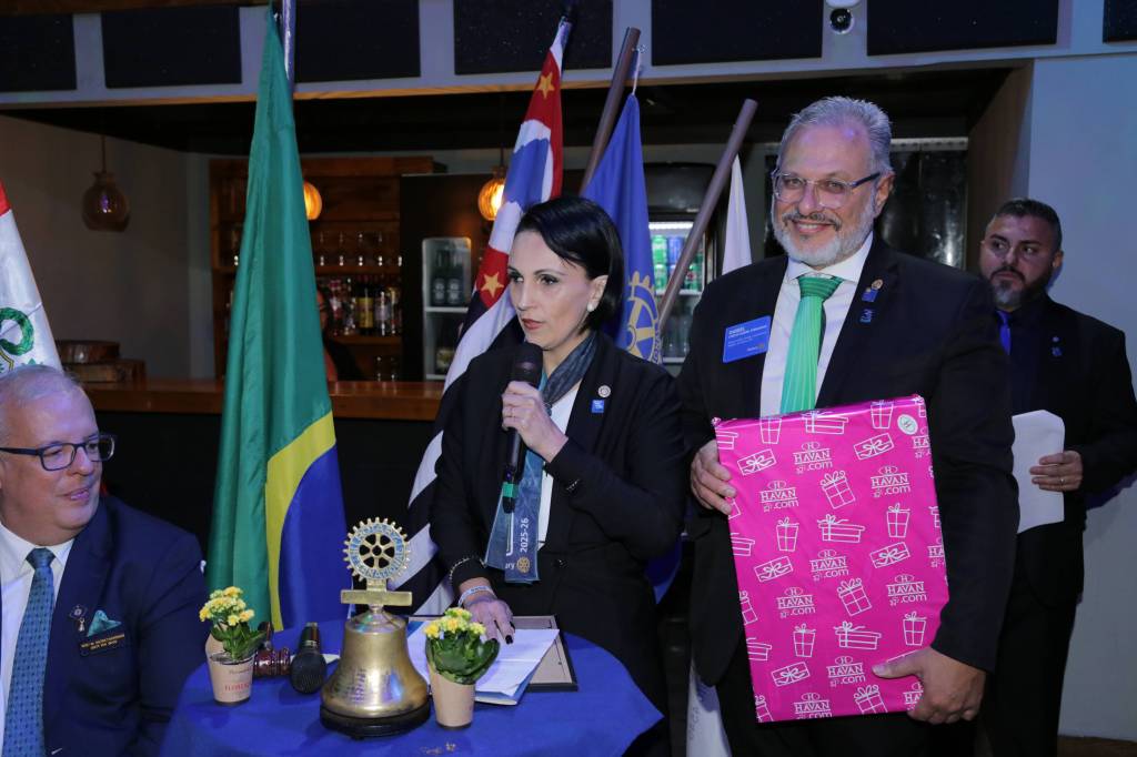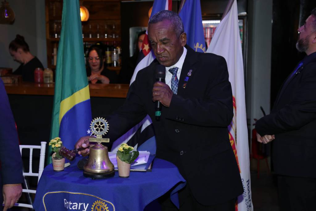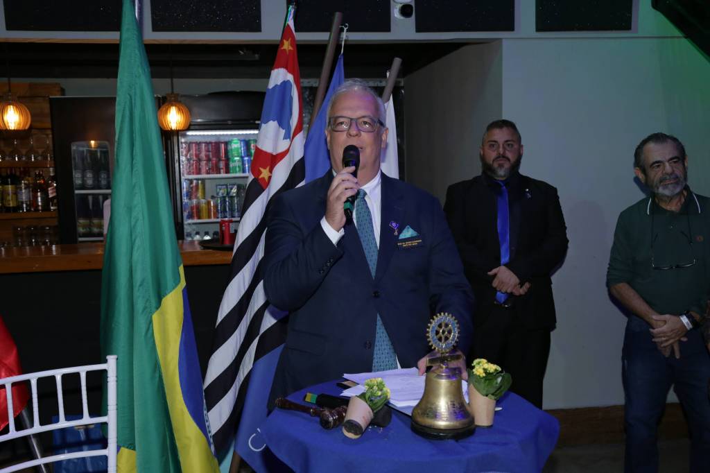 Durante o encontro, o presidente eleito Ricardo Marineli de Melo assumiu oficialmente o cargo, apresentando seu plano de gestão com foco em equilíbrio pessoal, networking e impacto social. Em seu discurso de abertura, Ricardo destacou a presença de autoridades distritais: “Quero fazer uma saudação e um agradecimento ao nosso governador do distrito 4540, Rafael Alves Ferreira, e à nossa coordenadora distrital, Karina Soto Ferreira. É uma honra tê-los aqui. Pela primeira vez em 47 anos de história de nosso clube temos um governador distrital eleito! Isso nos enche de orgulho.”